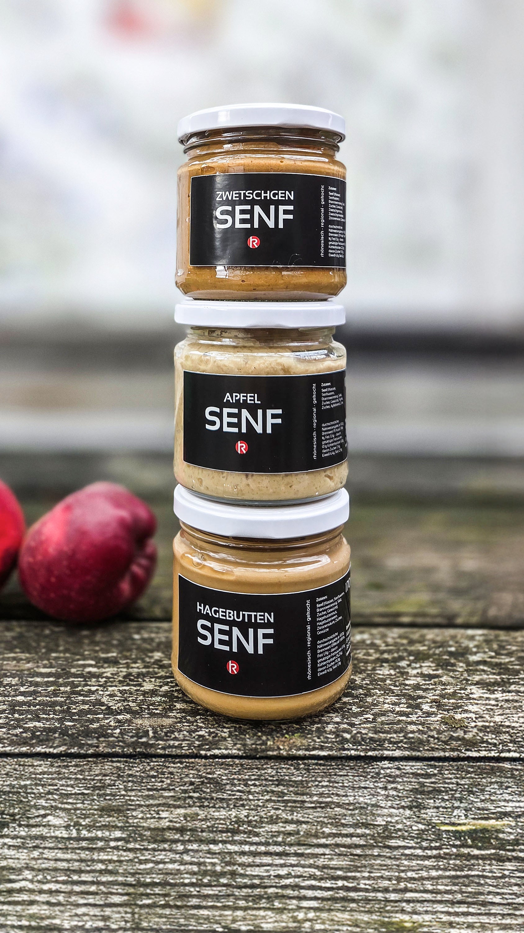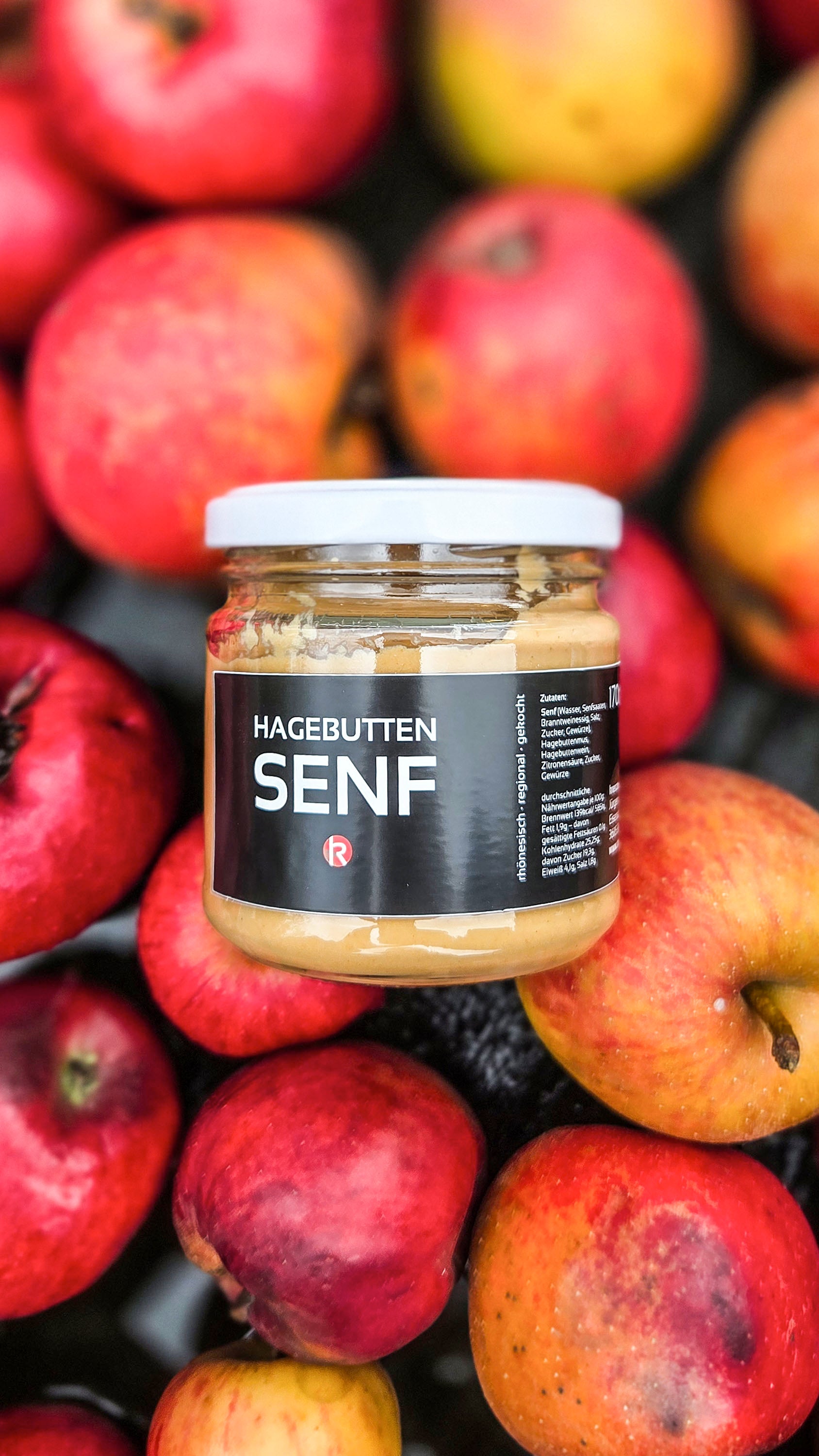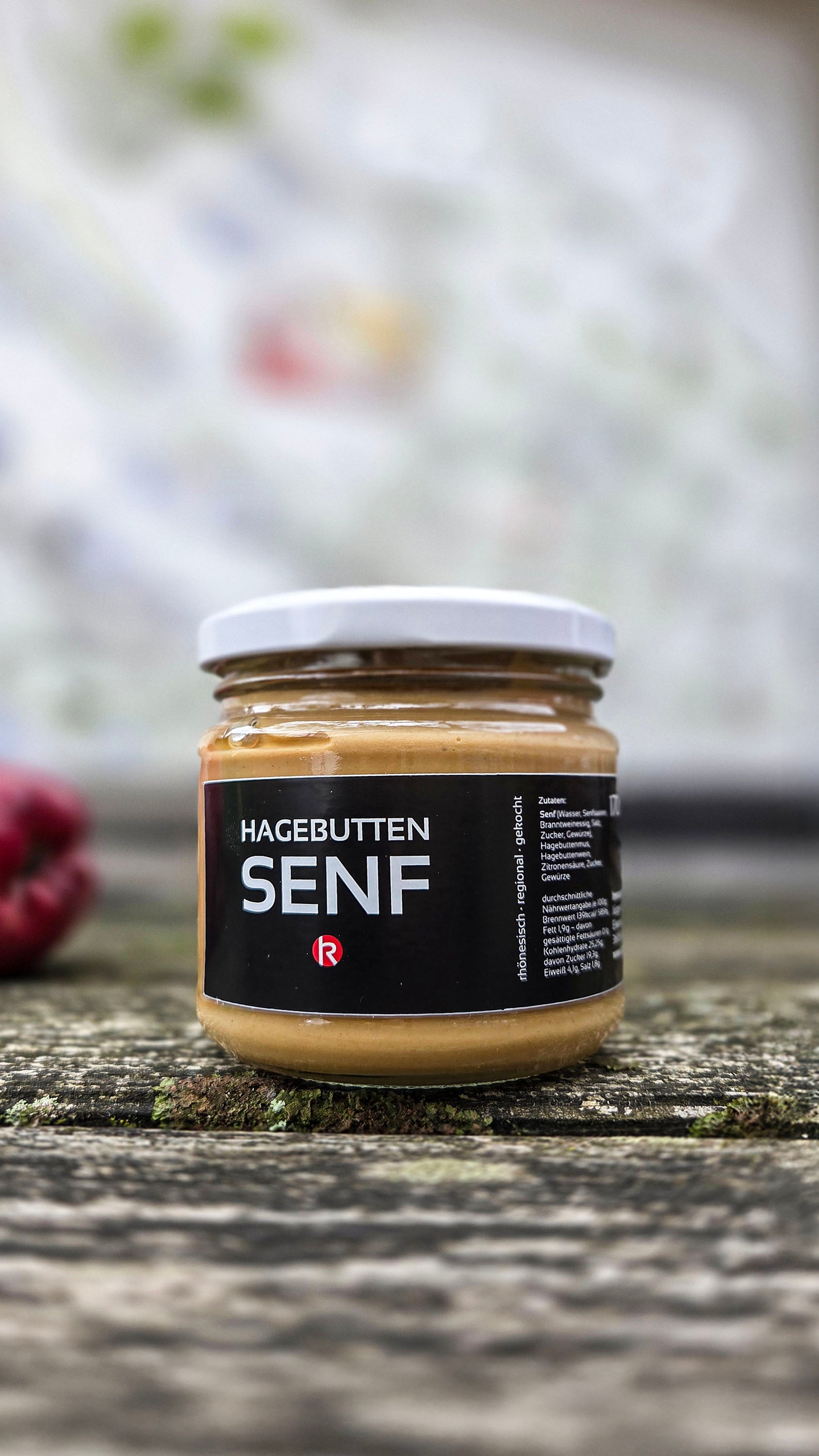 Zutaten: Senf (Wasser, Senfsaaten, Brantweinessig, Salz, Zucker, Gewürze), Hagebuttenmus, Hagebuttenwein, Citronensäure, Zucker, Gewürze (Inhalt: 170ml)