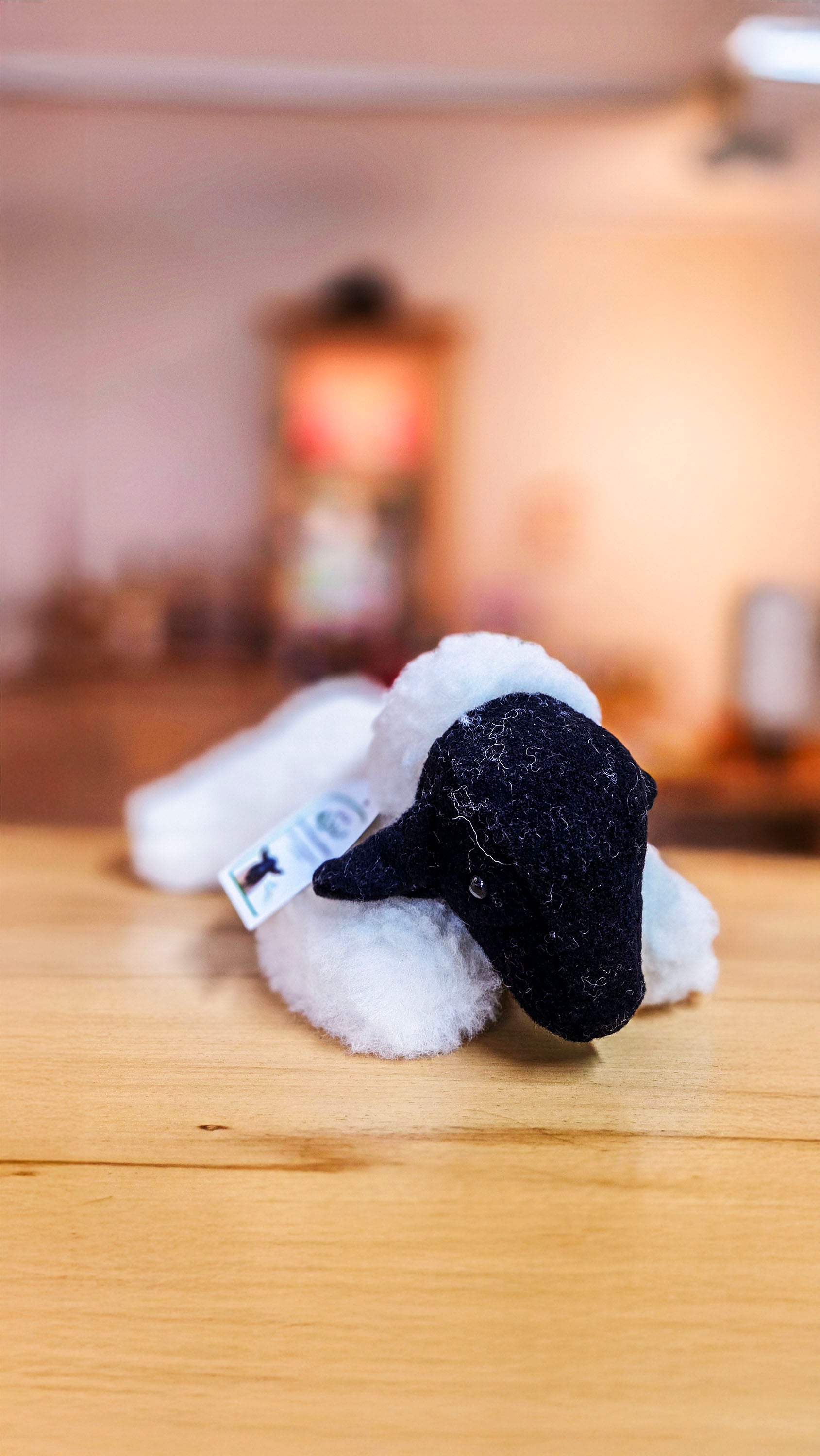 Plüschtier mit weichem Plüschstoff am Kopf, Körper aus Schurwollstoff (daher etwas rau), gefüllt mit echter Rhönschafwolle aus der Schäferei Kolb in Ginolfs.